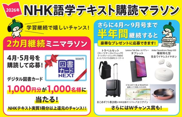 2026年度のNHKテキストがスタートしました。新規開講の講座も多く、「新しく始めたい」「もう一度やり直したい」という方におすすめのタイミングです。