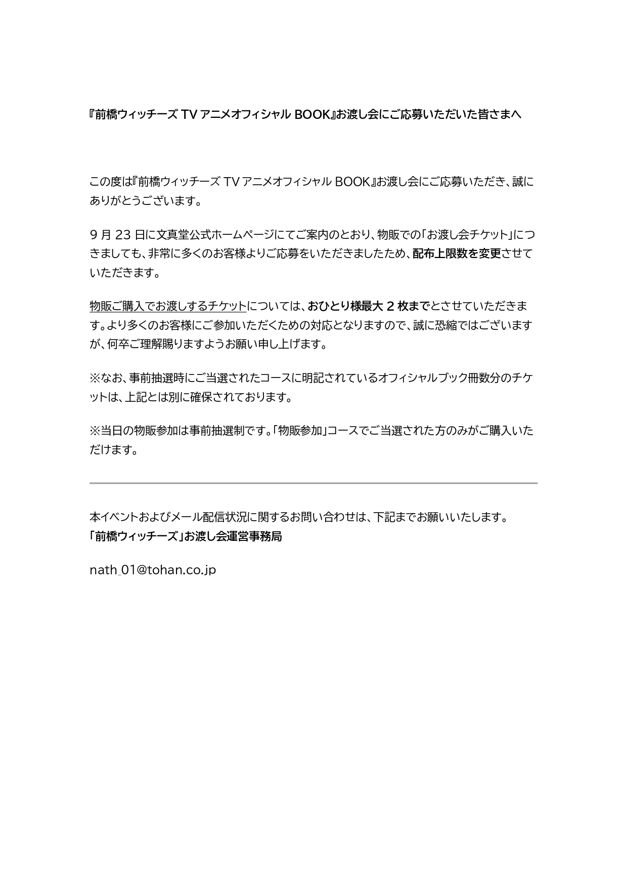 『前橋ウィッチーズTVアニメオフィシャルBOOK』お渡し会にご応募いただいた皆様へ