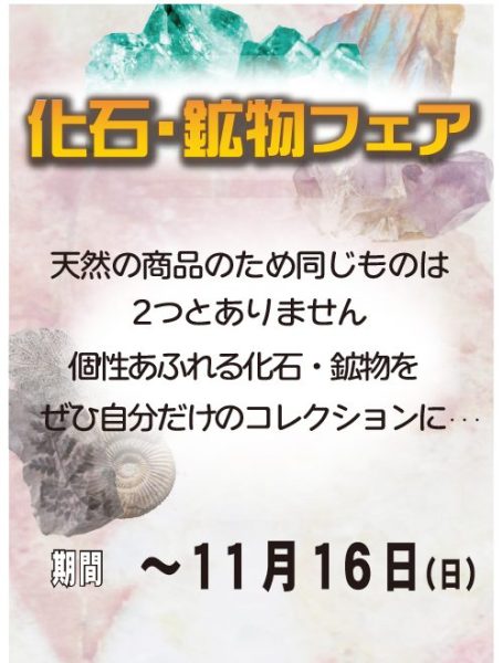 【上中居店・幸手店】化石・鉱物フェア開催中